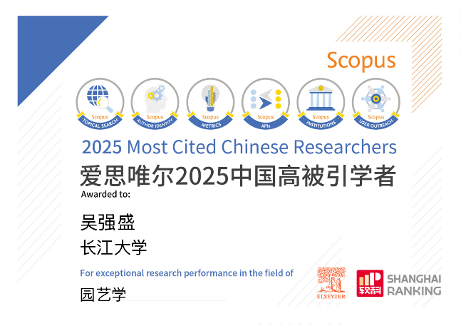 2026年1月30日,全球知名信息分析机构爱思唯尔(Elsevier)正式发布2025年度“中国高被引学者”(Highly Cited Chinese Researchers)榜单。该榜单基于全球权威的引文与索引数据库Scopus,采用上海软科教育信息咨询有限公司开发的方法,对中国学者的科研成果进行统计。本次共有6310位学者入选,其中园艺学领域共有20人。我院园艺学科吴强盛教授再度上榜,这是其连续第6年入选该榜单。根据Scopus数据,吴强盛教授目前已发表论文328篇,累计被引10381次,个人h-index为54。