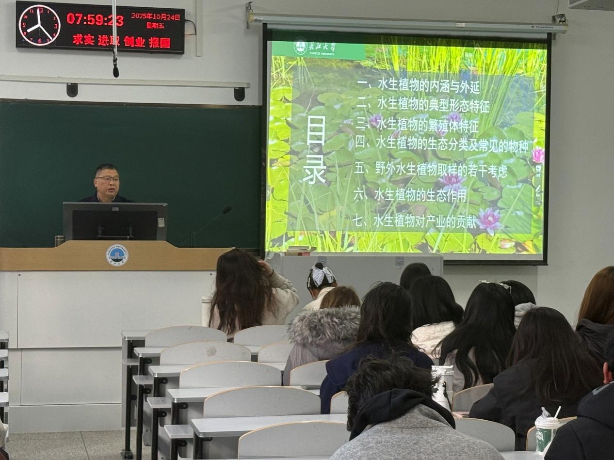 一,深化理论认知:通过袁教授的讲解,大家对水生植物的分类、生理特性及其在水体自净、生态平衡维护等方面的作用有了更系统、深入的理解;二,拓展科研视野:报告结合前沿研究与实际案例,帮助师生了解水生植物资源在湿地修复、景观营造及生态农业等领域的应用前景;三,激发学术兴趣:袁教授生动详实的讲解,激发了在座师生对水生植物及湿地生态研究的兴趣,为后续教学和科研工作提供了新思路;四,强化实践导向:内容紧密结合国家生态环境战略需求,增强了师生服务生态文明建设的责任感和使命感。