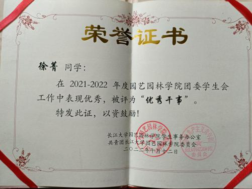 杨言、徐菁获2021-2022年度bv伟德国际1946团委学生会优秀干事 |