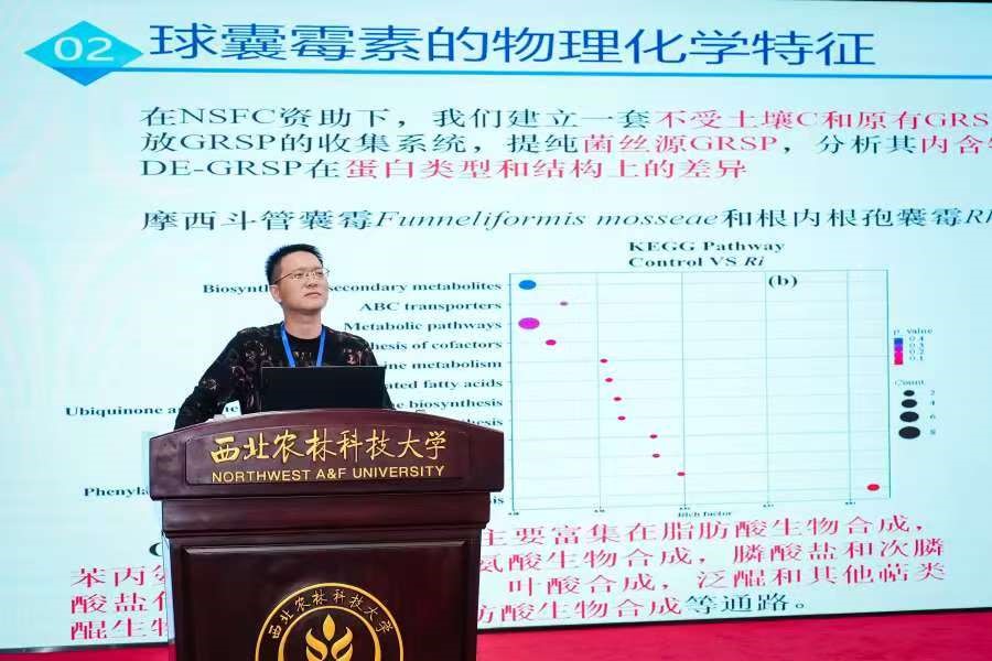 吴强盛教授以《球囊霉素的新认识》为主题作大会报告,深入剖析丛枝菌根真菌通过菌丝和孢子产生的蛋白球囊霉素在提升植物产量、改善品质及增强抗逆性等方面的关键机制与研究进展,引发与会专家广泛关注。