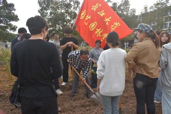 “劳动不是书本上的概念,是亲手摸到的土壤湿度,是播种时校准的深度。”老师们一边示范锄地的正确姿势,一边和身边的学生交流,鼓励大家把课堂知识和田间实践结合起来,在劳动里找到专业学习的“根”。瞿金旺老师蹲在田垄边,为同学们讲解不同作物的播种间距和土壤要求,把专业知识融入劳动场景,让实践变得生动具体。