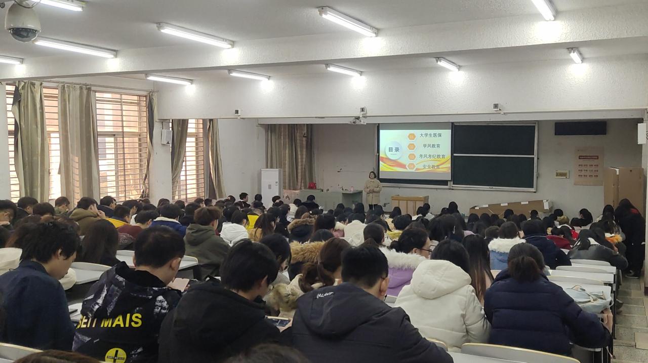 会上,辅导员黄小云就大学生医保、诚信考试、学士学位授予条件、学业警示、违纪违规文件、寝室安全卫生、寒假离校程序向同学们做了详细的讲解。黄老师希望大家要努力学习,积极备考,力争上游。同时,黄老师还告诫同学,现在已经大三了,要好好想想以后想干什么,要提前做好准备,机会总是留给有准备的人。最后,同学们还进行了诚信宣誓。