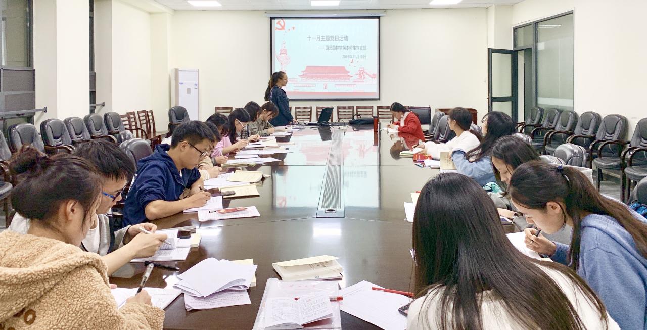 (通讯员:赵佳鑫、熊诗洁)为深入学习贯彻习近平新时代中国特色社会主义思想、锤炼忠诚干净担当的政治品格、团结带领全国各族人民为实现伟大梦想共同奋斗。2019年11月10日晚7时,bv伟德国际1946本科生党支部全体成员在农科大楼3002会议室开展了本月主题党日活动,会议由支部书记雷静主持。