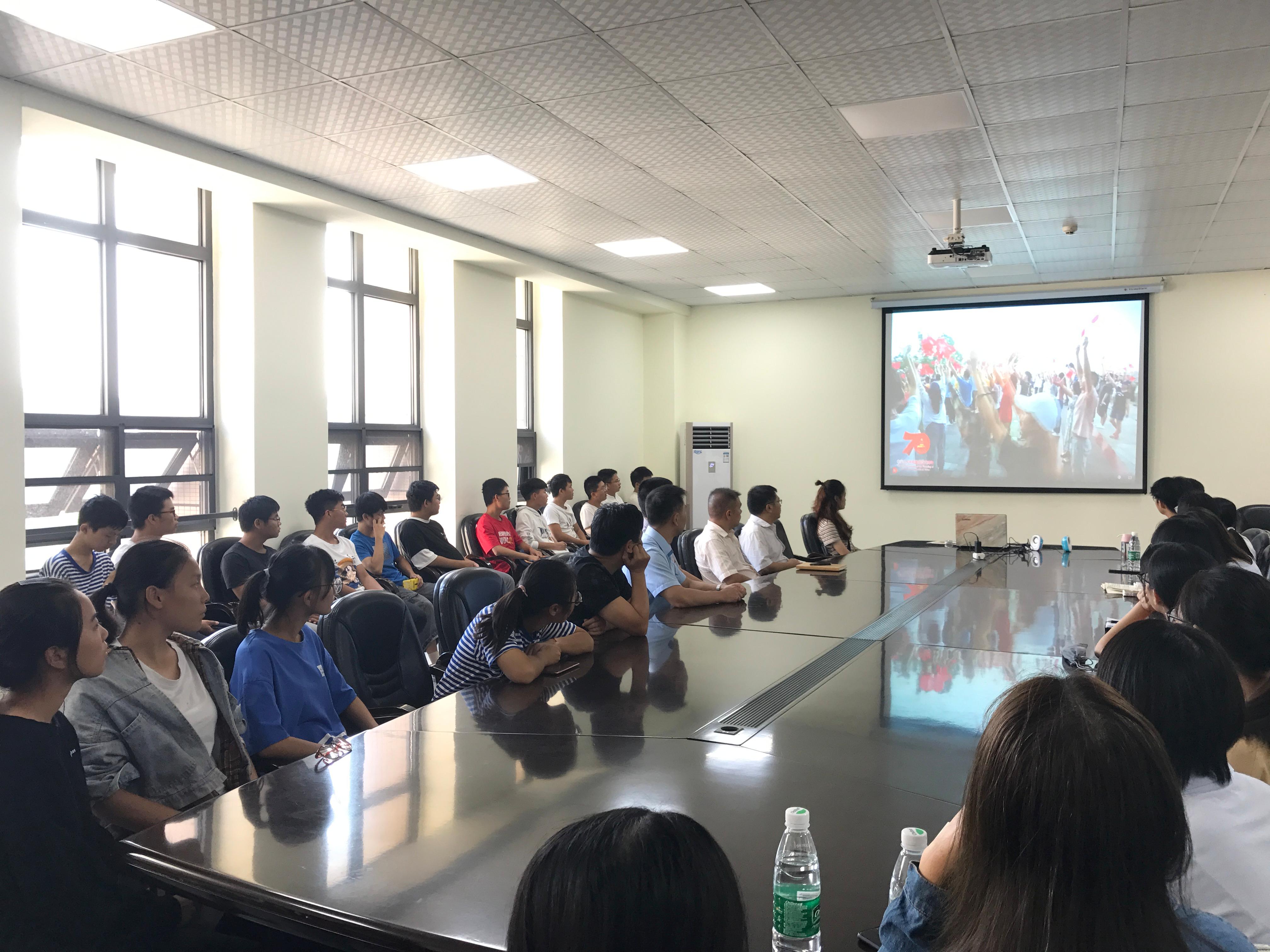 随后在上午9时,学院领导、辅导员和19级学生、入党积极分子、学生党员们在学院3002会议室整齐就坐等待着观看国庆阅兵盛典。此次仪式是给青年学生最大最好的一堂爱国课,也是进行爱国主义教育的“最生动教材”。 56门礼炮齐响,战斗机在天空摆出70的字样,庆祝新中国七十华诞,老将不老,众志成城勠力同心。党员项明达同学说:“长空猎猎,铁骨铮铮。当阳光打在鲜艳的巨幅国旗上的时候,当坚实而响亮的步伐震动大地的时候,当一件件大国重器在广场前巍然驶过的时候,我都会从心底涌起家国天下的壮志豪情,我都会真诚地祈盼国家昌盛富强。”