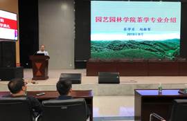 接下来的议程为专业介绍,首先上台发言的是风景园林系主任肖国增老师,他向同学们介绍风景园林专业的学科范畴、就业去向与职业类别、专业办学条件,并就近几年行业的前景对专业的发展历程做了详细的分析,同时向学生展示了往届学生作品,对在场的同学提出了殷切希望。之后由茶学系主任赵振军老师向同学们详细介绍了茶学专业的基本情况、办学资源以及就业方向,同时列举了几位茶学专业的优秀校友事迹,令同学们啧啧称赞。随后,园林系主任张威威老师紧接其后,详细介绍了园林专业的教学平台与师资力量以及良好的学术氛围,以及本专业的培养计划和对未来的展望。副院长肖波副教授就园艺专业的含义、培养目标、教学计划与学科内容展开详细的解说,让新生们耳目一新,豁然开朗。