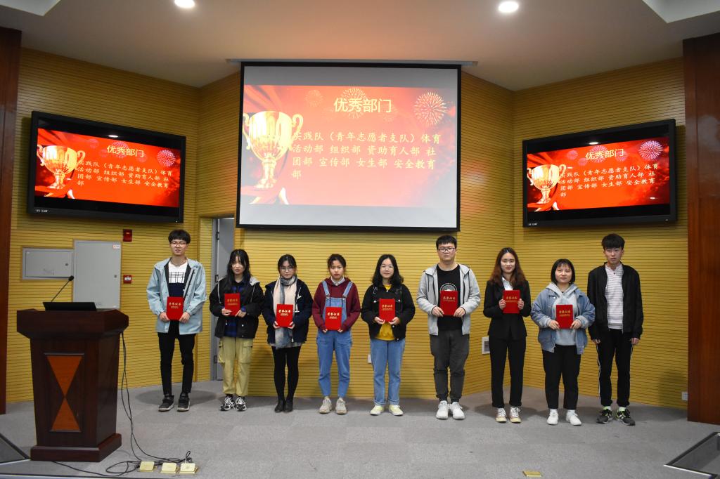 在同学们的热烈掌声中,大会隆重开场。大会第一项,雷老师宣读了第二十二届团委学生会名单,并给予他们真诚的鼓励和期望。大会第二项,主持人宣读了第二十一届团委学生会优秀干事、优秀部副长、优秀部长及优秀部门名单,并分别邀请了孙老师、雷老师、文书记和宋雪阳副主席为其颁发荣誉证书。大会第三项,第二十二届团委学生会主席兼第一副书记吴茜茜发言,她为我们新一届学生会提出了三点要求,一是戒骄戒躁、二是妥善处理工作与学习的关系、三是脚踏实地地做事;学生代表卜宪辰同学也发表了自己对学生会深刻的认识与感悟。大会最后一项,文书记发言总结并勉励各位同学:团委学生会成员的首要职责就是认真做事;其次,明智的大脑、独立的思想以及群众基础和创新意识是做好事的决定因素;第三,加强专业学习,做到工作学习两不误。大家受益颇深,并牢记文书记提出的“严于律己”的箴言。最后文书记强调,大家都应用奉献精神与无私爱心,为bv伟德国际1946这个大家庭添砖加瓦。大会进入尾声,主持人宣布此次大会圆满落幕,在场的老师与同学温馨地合影留念。