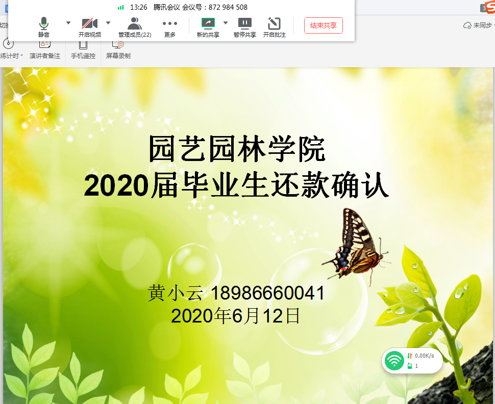 为避免毕业生离校后因错过还款时间,造成不良信用记录,6月12日通过腾讯会议线上开展了毕业生还款确认培训。会上资助专干黄小云老师讲解了毕业生还款确认流程、提前还款、考研学生展期办理等事项,强调个人征信的重要性,提醒学生务必按时按要求进行还款。参会的同学纷纷表示,感恩国家和学校的资助和培养,他们将带着这份爱心继续前行,在未来的岗位上贡献自己的青春力量。