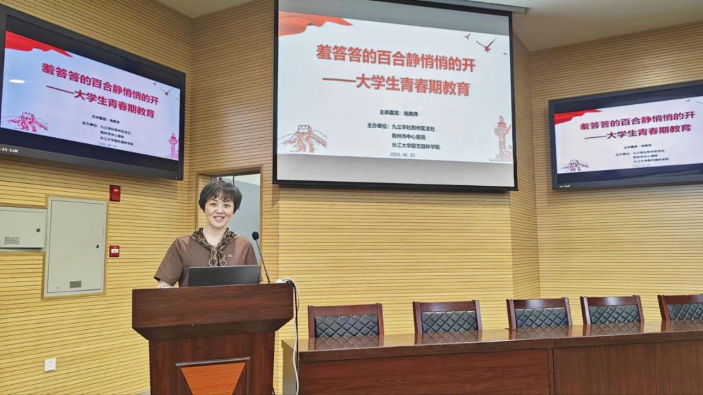 (通讯员 张峻梓)为深化大学生对青春期的理解,加强学院心理健康教育水平,切实预防风险行为,bv伟德国际1946于2024年6月20日在农科大楼1056开展大学生青春期教育讲座。此次讲座由园艺32301班赵志强主持,学院院长周明芹、党委副书记黄仙、辅导员张颖旭和23级全体同学参加此次活动。讲座特邀荆州市中心医院健康管理中心副主任向燕萍主讲。