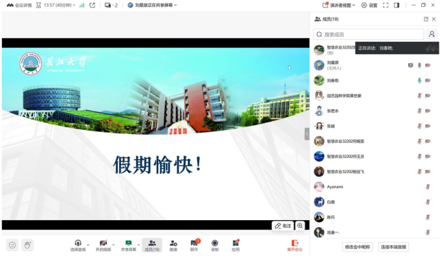 此次班会以班级为单位,由各班主任主持。班会重点强调了寒假期间的安全问题,包括交通安全、饮食安全、用电安全等方面,提醒同学们离开寝室务必断水断电,回家途中做好个人防护,要时刻保持警惕,增强自我保护意识。同时结合具体案例,通过播放安全微视频、深入剖析了安全事故的成因和后果,增强学生的自我防范意识。