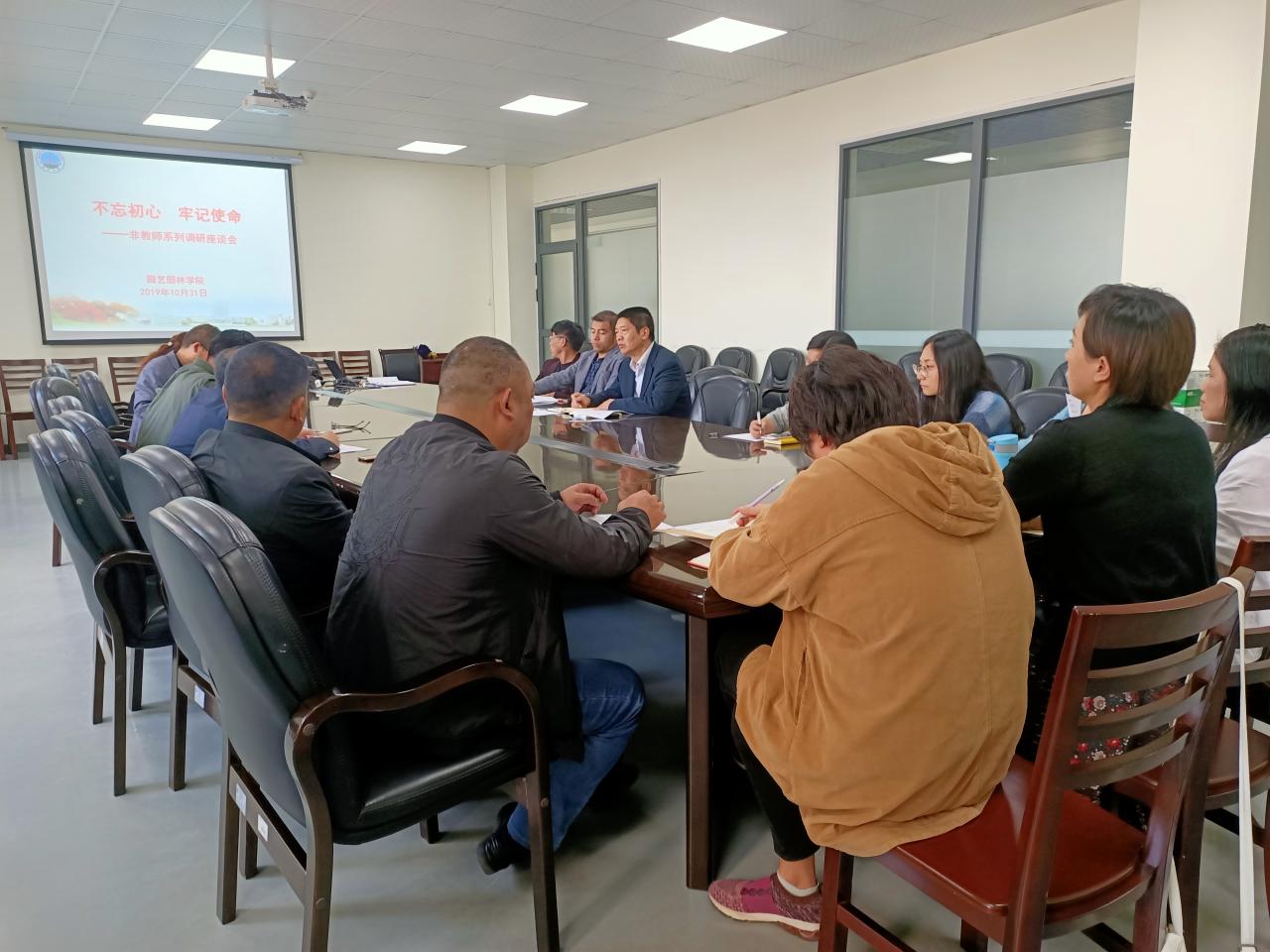 10月31日下午,bv伟德国际1946在农科大楼3002会议室开展“不忘初心、牢记使命”主题教育专题非教师系列人员的调研座谈会。