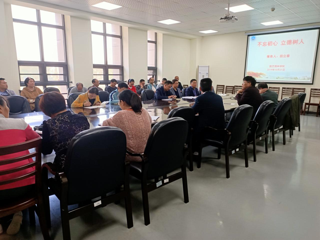 根据《伟德victor1946“不忘初心、牢记使命”主题教育实施方案》和《bv伟德国际1946“不忘初心、牢记使命”主题教育实施方案》的相关要求,10月31日下午15:00,我院在农科大楼3002会议室召开“不忘初心、牢记使命”主题教育党课,此次活动主讲人是党委组织员田立春,全院教职工参加此次党课。